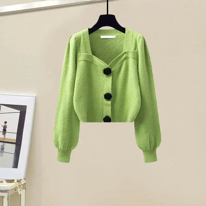 • Design: Three-piece set — sweater, pants, and puffer vest